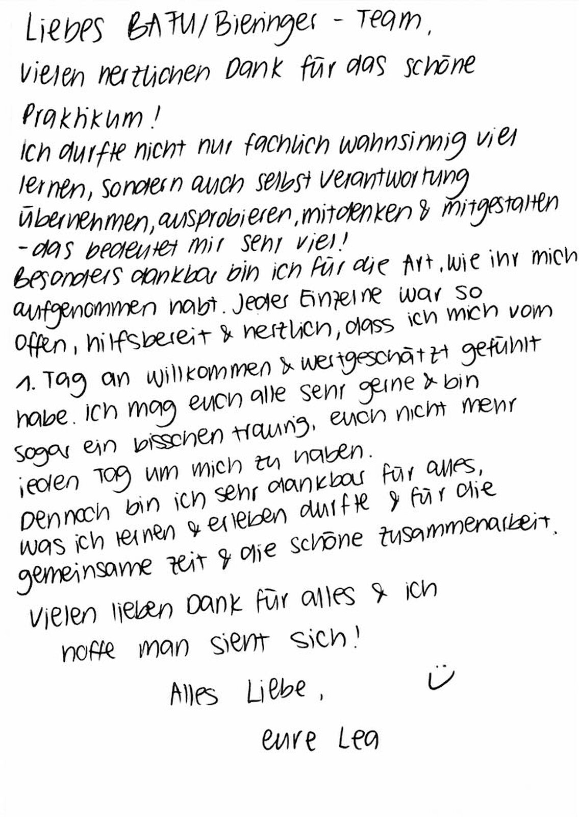 … in den letzten sechs Wochen wieder einmal live erleben dürfen: mit unserer ersten Praktikantin. Lea hat ihren Bachelor in Wirtschaftspsychologie an der TH Deggendorf bereits erfolgreich abgeschlossen, macht gerade ihren Master in Linz und sammelt nun praktische Erfahrungen bei verschiedenen Unternehmen. Dass wir mit der BAFU eine Station auf ihrer Reise zu echtem Verständnis durch aktives Erleben und Handeln sein durften, macht uns tatsächlich ein bisschen stolz. Lea hat unsere Arbeit mit ihrem Know-how, mit ihren neuen Blickwinkeln, auch mit ihrer herzlichen Art, mit Engagement, Neugier und frischen Impulsen bereichert. Auch wir sind jetzt schlauer, denn Erfahrung ist keine Einbahnstraße - wir haben mindestens genauso viel gelernt wie sie.